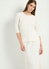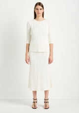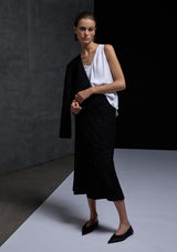 The Cloque Slim Skirt from Mela Purdie features an elasticated waistband and a form fit through the hips with a slight flare at the hem. Designed for a tailored fit, this form fitting skirt is crafted from Mela’s newly introduced textured Cloque fabrication. Its stretchy material and flattering silhouette offer both comfort and style. Pair with the Cloque T or Bolero to complete the look.
