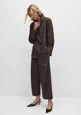 Crafted from Gravitene, a compressed Memory Stretch Mirco Twill with cotton touch .The Cone Pant offers an exaggerated barrel silhouette and lower leg panel details