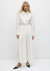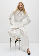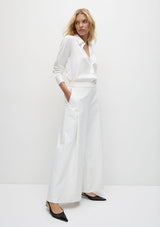 Crafted from Gravitene, a compressed Memory Stretch Mirco Twill with cotton touch. The Vent Pant features a flat front waist and elasticated back waistband on a full length flared silhouette