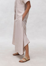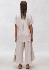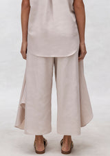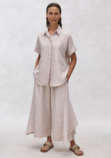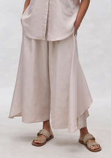The Bedouin Pant from Mela Purdie features a flat front paired with a comfortable back elasticated waistband, side pockets and a flowing wide-leg design that offers the elegant illusion of a skirt, providing both sophistication and freedom of movement. Crafted from Mela’s innovative technical taffeta fabrication, Gross-Grain, the fabric boasts a luxurious pearlised sheen that adds a touch of refinement and modernity to your look.