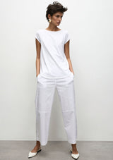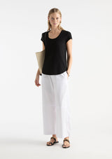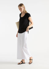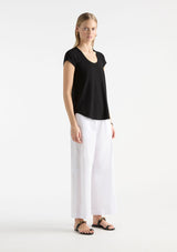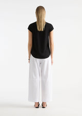 The Slice Pace Pant from Mela Purdie features an elasticised waist, side pockets at hips and a slightly cropped wide leg featuring a subtle contrasted seam detail. This versatile pant is crafted from Mela's best-selling Microprene; a lightweight cotton stretch fabrication that is machine washable.