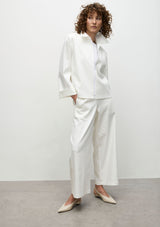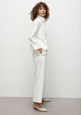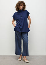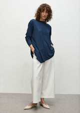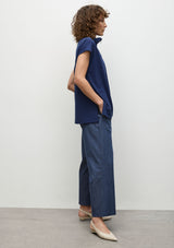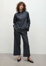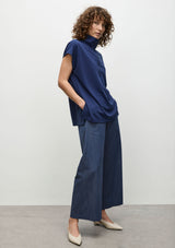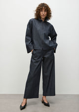 Discover Mela Purdie's Soft Stretch Denim fabric, characterised by its super 4-way Stretch & Memory. The Stretch Denim Welt Pocket Pant has a modern wide leg fit and welt pockets