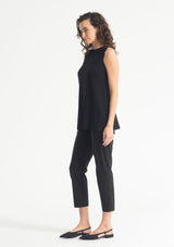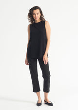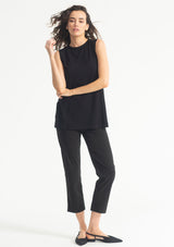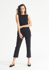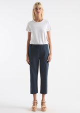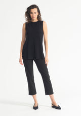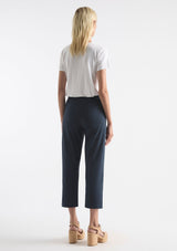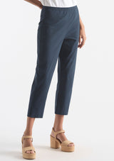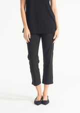 The Cropped Pant by Mela Purdie is crafted from Microprene, a lightweight stretch fabrication that is machine washable and ideal for travel. This design features a comfort fit elastic waist and cropped leg that falls to mid-calf.