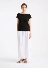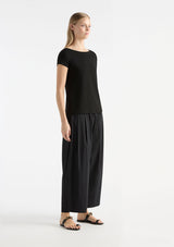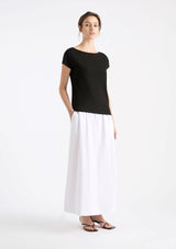 The Raglan Shell from Mela Purdie is a timeless wardrobe staple featuring a flattering boatneck and cap sleeves. Perfectly cut, this relaxed fit tee will make a fresh addition to your everyday wardrobe. Crafted from matte jersey, offering optimal comfort and stretch.