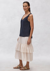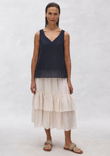 The Audrey Tank with a flattering soft v-neckline and double layer front crafted in Mela Purdie's signature Vapour, a light weight opaque weave with plisse texture.