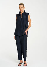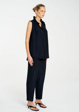 Crafted from Mela Purdie's Mache, featuring a relaxed fluidity & smooth lustre surface. The Frill Neck tank is an elegant classic silhouette featuring a frill neckline detail and gathered shoulder seams.