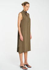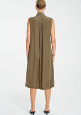 Crafted from Mela Purdie's Mache, featuring a relaxed fluidity & smooth lustre surface. The Tab Slide Dress features a crisp collar stand with tab button closure.