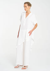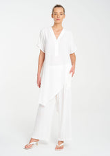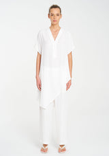 Crafted from Mela Purdie's classic Mache, a fine Denier technical weave with an airflow finish. The Veil Tab Shell features a long asymmetrical hemline and a flattering v neckline with a button closure.