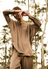 Crafted from Mirror Satin a fine gauge featherlight satin with an air flow finish for easy wearing. The Dolman Villa Shirt is an oversized fit shirt with a dolman sleeve, offering an effortless silhouette for any occasion.