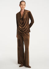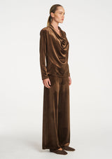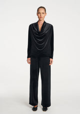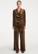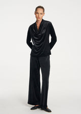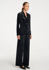 Crafted from Mela Purdie's Stretch Panne, a midweight velvet, featuring a subtle lustre finish. The Palazzo Pant offers a comfortable and flattering wide leg silhouette, featuring an elasticated waistband. An essential pant in an elevated fabrication.