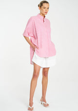 Crafted from Mela Purdie's Lightweight Striped Microprene, a crisp, cotton rich fabric with high stretch and a polished finish, featuring a bold yarn dyed stripe. The Villa Overshirt offers a relaxed fit silhouette and stand collar; this is a wardrobe essential.