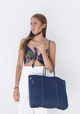 The Sorrento Bag by Prene Bags is crafted from a soft neoprene fabric. Features include rope handles that provide strength with minimal stretch and weight, as well as press studs at the end to compress size of bag. The bag also includes a removable zip up pouch for storing valuables. The Sorrento bag is an overall handy mesh dust bag for storage, travel and outdoor activities.