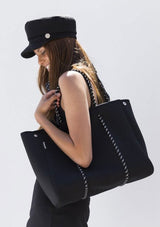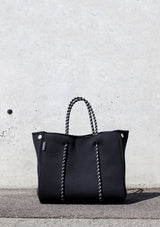 The Brighton Bag by Prene Bags is crafted from a soft neoprene fabric. Features include rope handles that provide strength with minimal stretch and weight, as well as press studs at the end to compress size of bag. The bag also includes a Blue removable zip up pouch for storing valuables. The Brighton bag is an overall handy mesh dust bag for storage, travel and outdoor activities.
