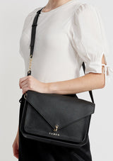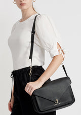 The Kennedy Satchel Bag from Saben is crafted from a pebble textured leather and features a boxy satchel silhouette. Further details include a hidden back zip section for easy and secure access to the essentials.