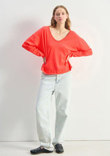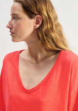 The Sonoma L/S T-Shirt by American Vintage features a V neckline, long sleeves and slightly oversized fit. It is crafted from 100% Cotton and has a soft fleck finish in the fabrication