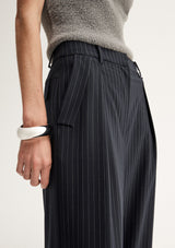 The Tobias Pant by Elka Collective is made of a pinstriped wool blend fabric. Style effortlessly with a crisp white shirt or relaxed knitwear. Ideal for wearing to the office.