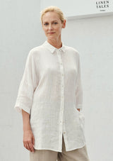 Slightly oversized yet undeniably elegant, the Oregano Shirt by Linen Tales is a modern take on a classic shirt. Featuring a longline cut and shorter sleeves.