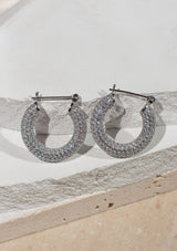 PH18A pair of medium-sized hollow + lightweight metal hoops that are perfect for everyday wear featuring Cubic Zirconia Stones