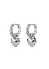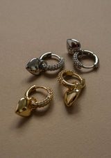 Pair of pavè covered huggies with a metal puffy heart charm