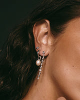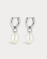 SM24The White Pearl Amalfi Huggies are hoops featuring a white pearl charm