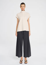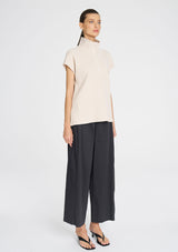 The Zip Front Shell features a half zip detailing through front with a firm stand collar. Crafted in Cord Knit, a plush large scale rib, soft to touch with an aerated warmth, this is a great trans-seasonal piece.