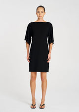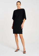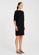 Crafted in from Mela Purdie's Yacht Stripe Jersey. The Picasso Dress an elevated silhouette featuring a flattering sliced boat neckline and flattering batwing sleeve.