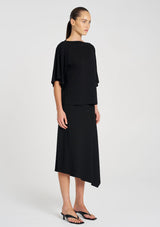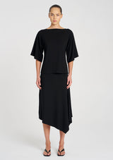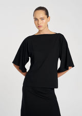 Crafted in Mela Purdie's heritage Mid weight Matte Jersey. The Picasso Top is an elevated silhouette featuring a flattering sliced boat neckline and draped sleeve.