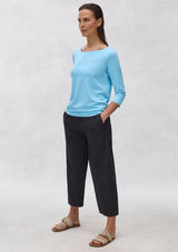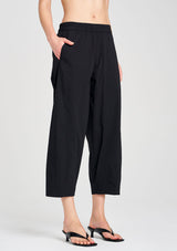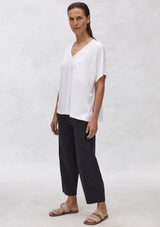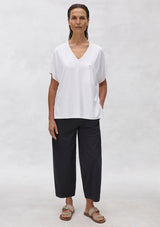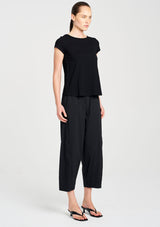 The Cross Pant from Mela Purdie features an elasticated waistband, hip pockets and panel detailing, all tailored into a stylish barrel leg design. Crafted from Mela’s best-selling Microprene; a lightweight cotton stretch fabrication that is machine washable.