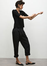 Microprene is a lightweight cotton that is easy to care for, durable and crease resistant. Sourced from the fabric mills of France, Microprene is crafted from a French stretch cotton blend and is exclusive to the Mela Purdie brand. The high-stretch component of the fabric provides durability and in-transit comfort.