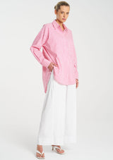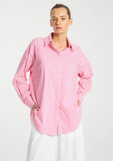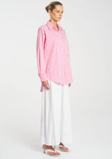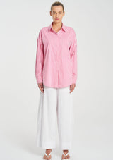 Cut in Mela Purdie's Lightweight Striped Microprene, a crisp, cotton rich fabric with high stretch and a polished finish, featuring a bold yarn dyed stripe. The Relaxed Pocket Shirt is an elevated staple featuring a crisp collar and pocket detailing.
