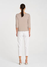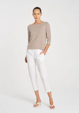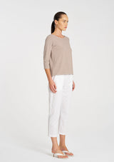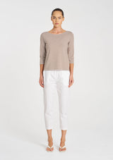 A core Mela Purdie silhouette. The Relaxed Boat Neck is versatile and has a flattering boat neckline and 3/4 length sleeve. Crafted in the Yacht Stripe Jersey, this is the perfect piece for your wardrobe.