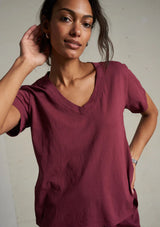 T69The Hendrix Basic V-Neck by Perfect White Tee features a V- neck, short sleeves and a relaxed body silhouette. This t-shirt is crafted from 100% soft cotton and is a perfect addition to your summer wardrobe.
