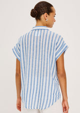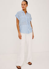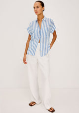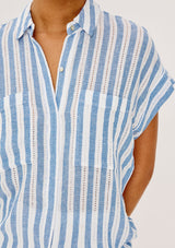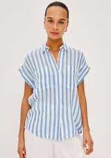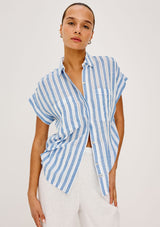 The Cito by Rails is a relaxed button-up shirt crafted from luxe linen, featuring a classic collar, chest patch pockets, cuffed cap sleeves, and an all-over seashell print.