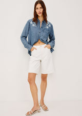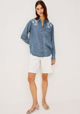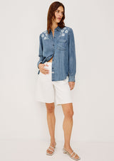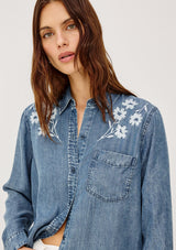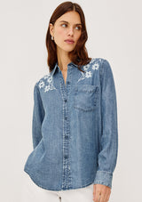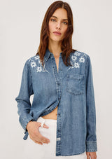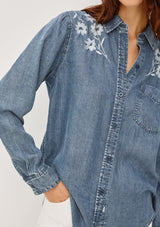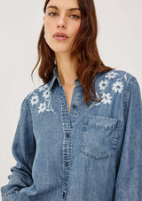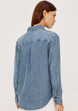The Ingrid L/S Button down by rails features a light blue vintage wash, classic fit and patch pocket at chest. This shirt is super soft and lightweight take on the classic denim