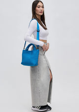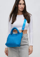 The Sky's The Limit Small Crossbody Tote is crafted from intricately woven neoprene. This crossbody features a versatile design includes a detachable crossbody strap and a matching pouch