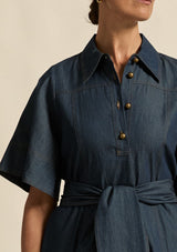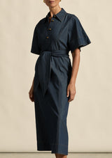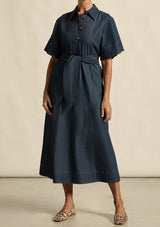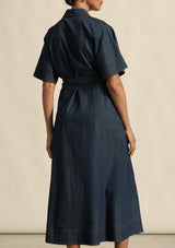 The Cameo dress by Zoe Kratzmann is made for versatile, everyday elegance. Featuring flutter sleeves and tan topstitching that brings character to a timeless chambray silhouette.