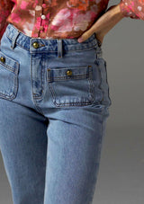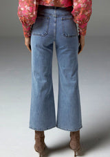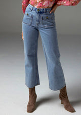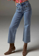Channelling a retro charm, the surrender jean offers a cropped wide-leg profile that’s high-waisted and effortlessly chic. Featuring curved front pockets finished with brass domed buttons add personality and flair, while a touch of elastane ensures a comfortable fit without compromising its structured silhouette