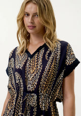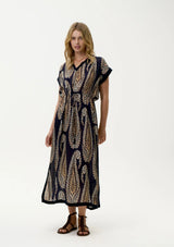 09719The Sammi Dress by One Season has short sleeves, a v-neckline, and a drawstring waist which ensures a flattering fit, the Sami maxi is a must-have for your suitcase.