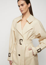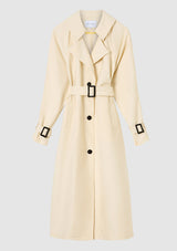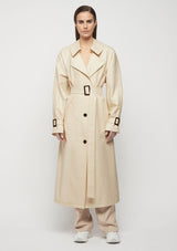 The Browne Oversized Trench Coat from Friend of Audrey features an oversized silhouette with a classic lapel sleek, welted pockets, black button and removable belt and cuff belts with buckle finishings. Crafted from a luxe 100% cotton fabrication, this staple longline trench is the perfect layering piece to take you from season to season.