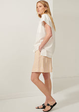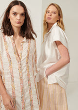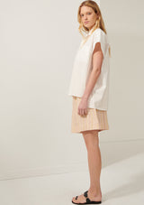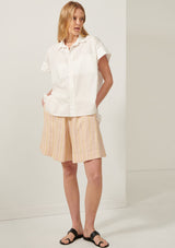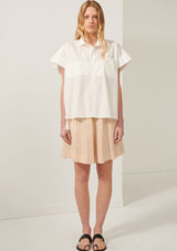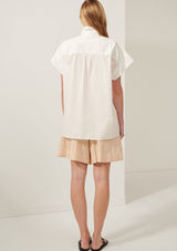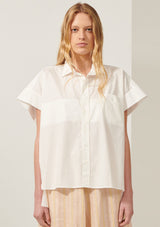 The Sascha Shirt from POL Clothing is made from a crisp Cotton shirting. It features a classic shirt collar with button through closure through the centre front, short sleeves with doubled cuffs, single breast pocket and a hi-lo hem.