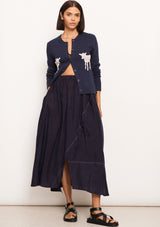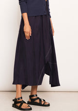 The Vault Wrap Skirt from POL Clothing features an asymmetric faux wrap detail with an elasticised waistband, hip pockets, top stitch detail and an A-line silhouette. The diagonal fold detail with topstitch creates a wrap effect, while a 20cm split underneath finishes the look. This midi length skirt gives an elevated feel in an easy, pull-on silhouette.