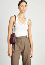 The Nikko Phone Sling by SABEN has a zipper opening, cotton drill lining, card slot compartment and detachable and adjustable crossbody strap.