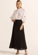 The Blend Skirt from Zoe Kratzmann offers a simple, chic choice for the season. This bias cut, linen skirt has a softly elasticated waist and falls to the mid-calf. It will prove to be the perfect companion to wear with feminine tops to carry you into spring in style.