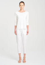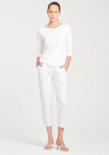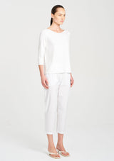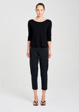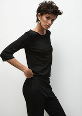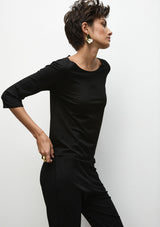 The Mela Purdie's Boatneck now has a relaxed silhouette; this is a must have essential for every wardrobe. Extra room has been added to the waistline, softly scooped boat neckline and 3/4 length sleeves. This style falls to the hip and is crafted from Matte Jersey, offering comfort, durability and stretch