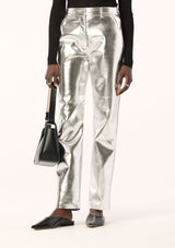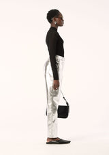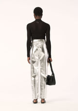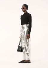 The Atom Pant from Elka Collective is a striking addition to your wardrobe that embraces the current metallic trend with confidence. Bold, fun, and bursting with personality, this pant is crafted from Elka's signature vegan leather fabric in a dazzling high shine silver chrome finish. The Atom Pant features a relaxed fit with a high waist, zip fly, front and back pockets and a full-length straight tapered leg. Make a bold statement and elevate your style with these eye-catching pants.