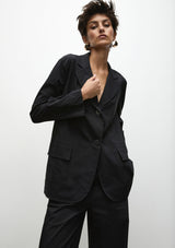 The Stretch Blazer from Mela Purdie features a classic lapel, single front with two buttons, full length sleeves and patch pocket detail. Designed for a relaxed tailored fit, this Blazer is crafted from Mela's best-selling Microprene; a lightweight cotton stretch fabrication that is machine washable.