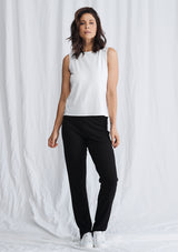 The Straight Leg Pant from Mela Purdie features a slightly tapered leg and an easy flat comfort fit elastic waist. Made from Mela Purdie's exclusive matte jersey offering stretch and comfort. A must have for any travel wardrobe.
