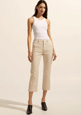 The College Jean from Zoe Kratzmann features a mid-rise, zipper, belt loops, functional front and back patch pockets and a cropped straight leg silhouette. Crafted in soft quality denim with infused stretch, this jean will become your new go-to for the season.