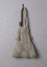 Knotted and tied from hand spun hemp fibres, this versatile piece is handmade – from start to finish – by fair trade artisans in Bangladesh. Both strong and flexible, this natural fibre allows the bag to stretch as it fills, accommodating a surprising volume of goodies.