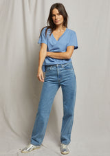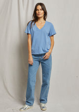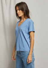 T69The Hendrix Basic V-Neck by Perfect White Tee features a V- neck, short sleeves and a relaxed body silhouette. This t-shirt is crafted from 100% soft cotton and is a perfect addition to your summer wardrobe.